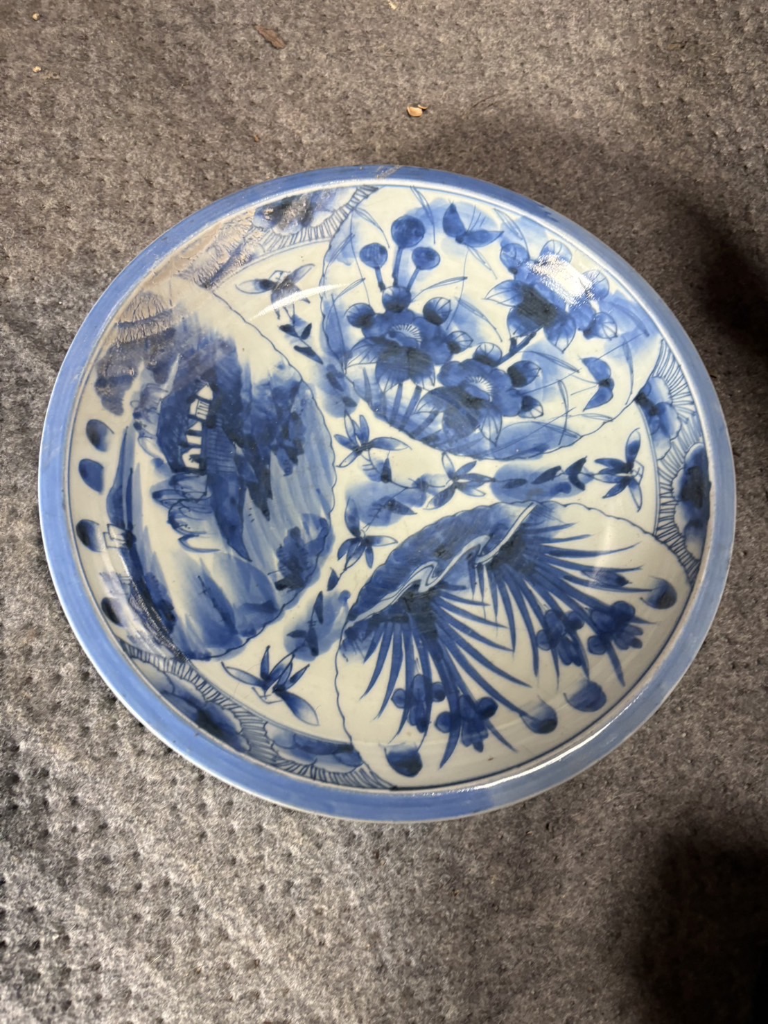 今回のご依頼は、石川県白山市にお住まいのお客様からの蔵整理依頼でした。蔵の奥から直径40cmほどの伊万里焼の大皿が数点見つかり、その中の一点が写真の染付皿でした。