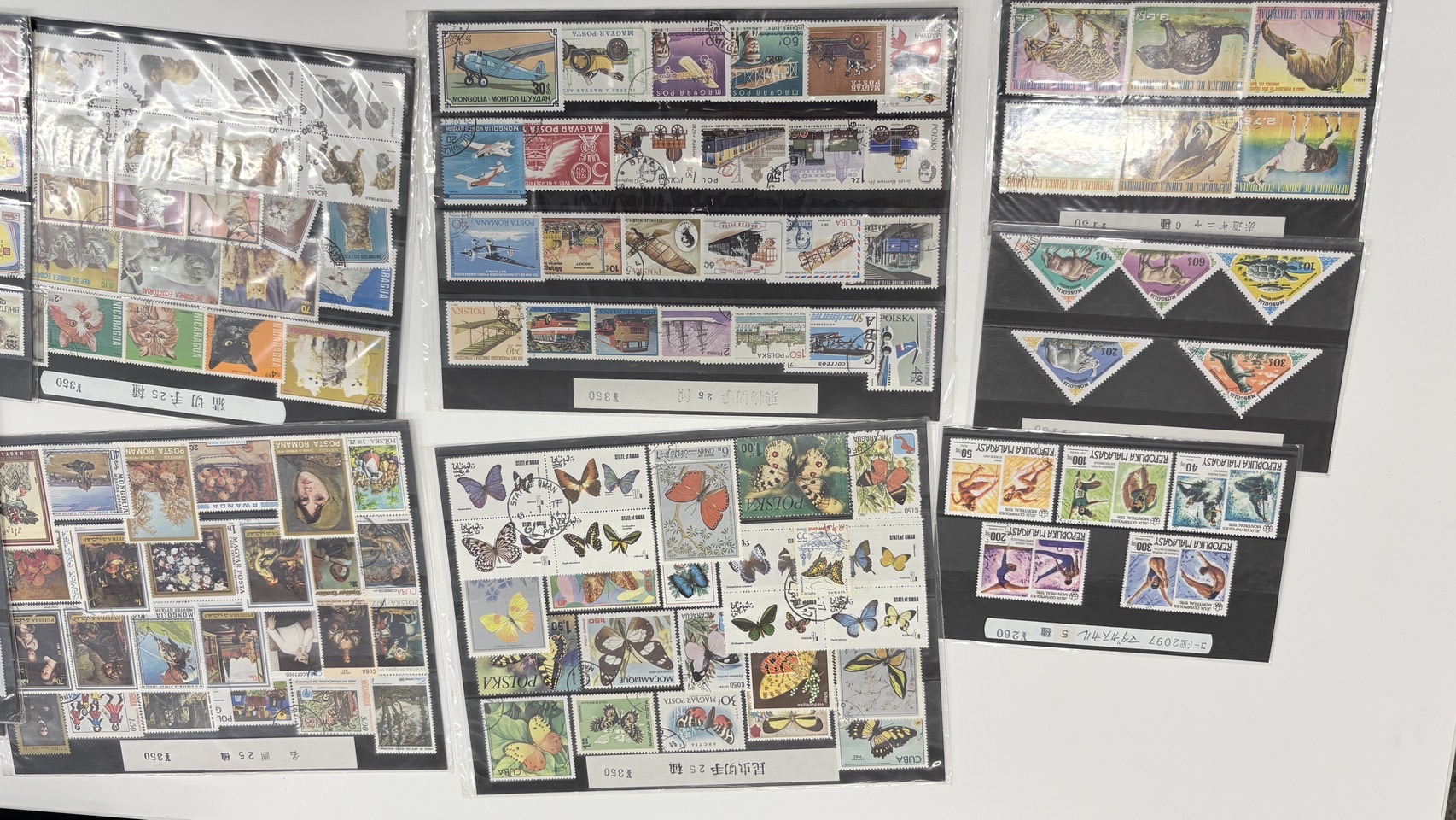 • 内容:蝶や動物、航空機、絵画シリーズの切手