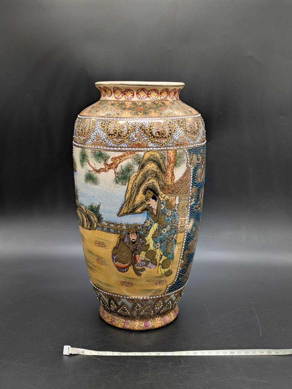 この花瓶は当時の美術陶器の特徴を色濃く残しており、海外輸出向けの装飾性豊かな作品である可能性も考えられました。