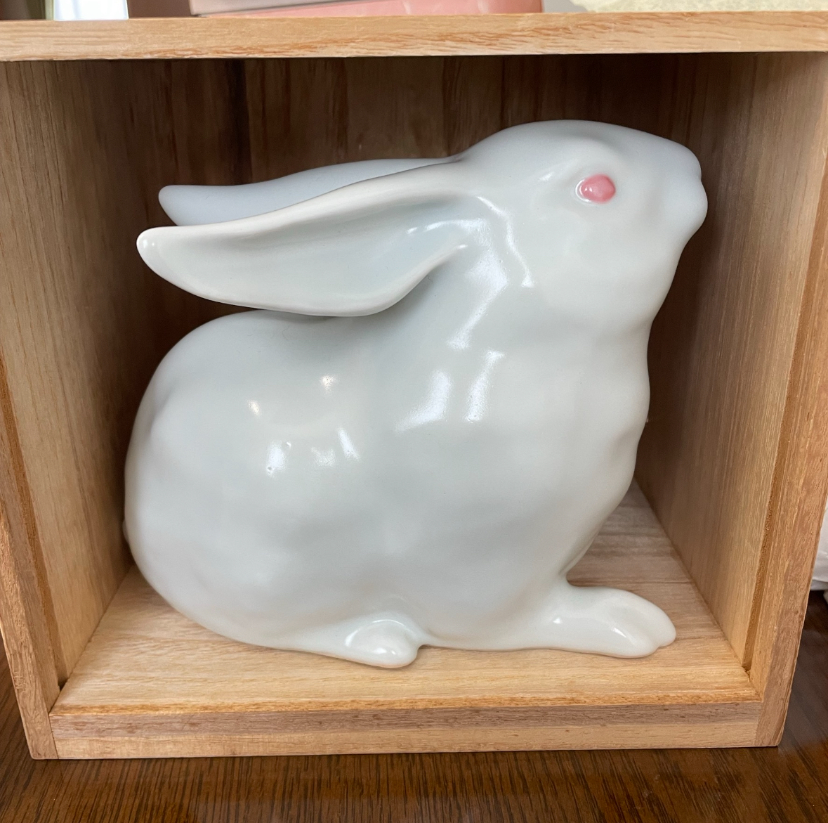 兎は古来より「繁栄」「飛躍」の象徴として親しまれ、縁起物としても人気があります。白磁の清らかさと相まって、美術的にも工芸的にも価値の高い一品でした。