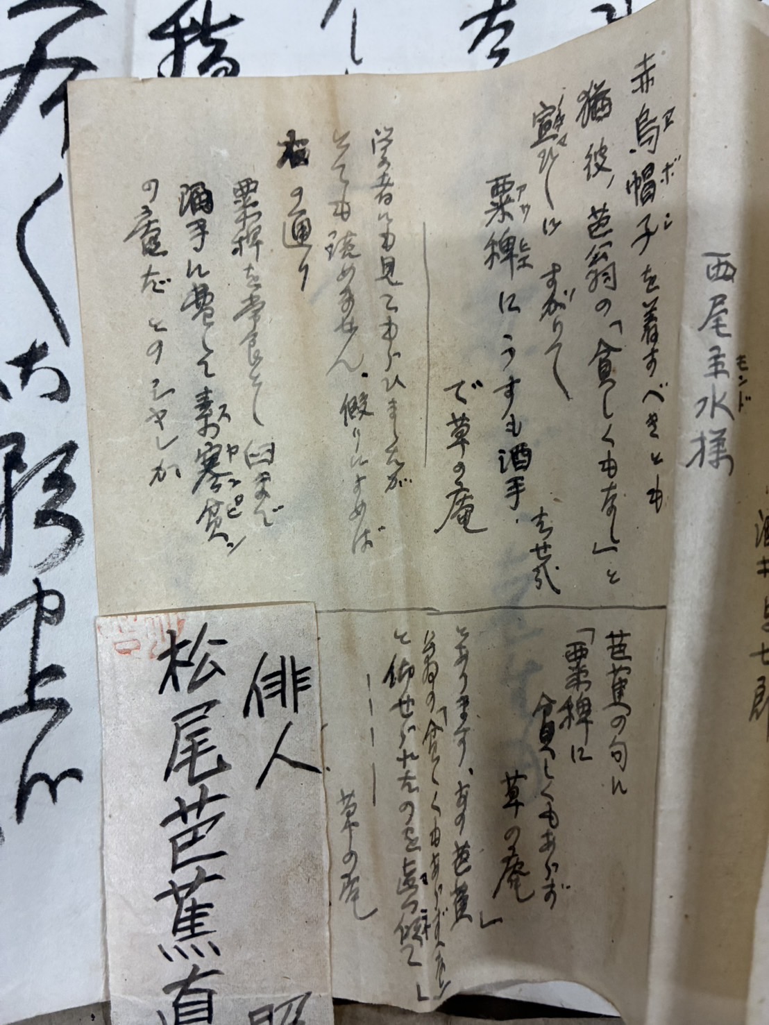 • 「松尾芭蕉翁」と署名された資料