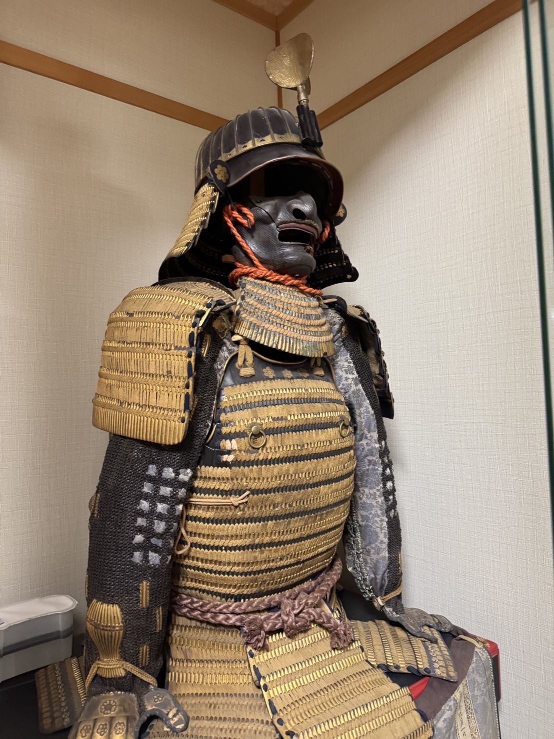 今回ご依頼いただいたのは、代々受け継がれてきた 江戸期の甲冑 でした。全体に施された金小札縅(こざねおどし)の美しさが際立ち、武士の威厳を今に伝える逸品です。